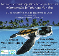 Através do minicurso ‘Ecologia, Pesquisa e Conservação das Tartarugas Marinhas’, que vai ocorrer nos dias 30 de novembro e 1º de dezembro, em Ilhéus, biólogos, estudantes e interessados poderão se aprofundar sobre a vida, desenvolvimento e modo de conservação da espécie. A atividade é promovida pela Universidade Livre do Mar e da Mata (Maramata) em parceria com o Instituto Bios Iníbio e será ministrado pela professora Shany Mayumi Nagaoka, mestre em Oceanografia Ambiental pela Universidade Federal do Espírito Santo (UFES).
