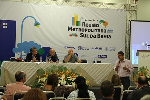 No seminário dedicado ao debate sobre a criação da Região Metropolitana do Sul da Bahia, realizado nesta quarta-feira (13), em Ilhéus, o presidente da Associação dos Municípios do Sul, Extremo Sul e Sudoeste da Bahia – Amurc, Lenildo Santana destacou que a entidade já está intensificando a discussão junto aos prefeitos e reforçou que essa proposta precisa ser ampliada entre os poderes constituídos da sociedade civil.