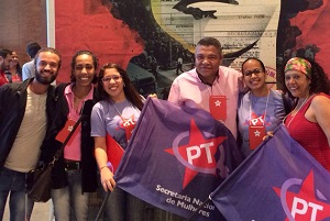 A convenção do Partido dos Trabalhadores, realizada no último sábado (21) em Brasília, reuniu lideranças políticas e militantes de movimentos sociais para homologar a candidatura de Dilma Rousseff para reeleição à presidência da República. O deputado federal baiano Valmir Assunção (PT-BA) esteve na capital federal para acompanhar a reunião nacional. Além de ratificar seu apoio irrestrito a Dilma, ainda cobrou uma participação mais ampla de mulheres na política. “Vamos reeleger esse projeto que está em curso pelo PT e brigar na Bahia para que Dilma seja bem votada como foi na eleição passada. Além disso, temos de lutar pela participação de mais mulheres na política. Nosso partido já tem resoluções que criam paridades, mas precisamos incentivar a maior participação feminina nas eleições”, pontua Valmir.