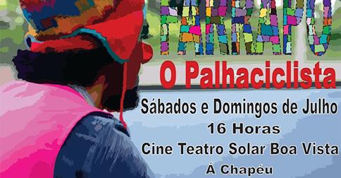 Todos os sábados e domingos de Julho, às 16h, Marcos Fernandes, o Palhaço Farrapo, comemora o seu aniversário de 30 anos junto com o Cine Teatro Solar Boa vista, estreando o seu espetáculo de rua “Farrapo: O Palhaciclista”, que conta com apresentações na área externa do espaço.