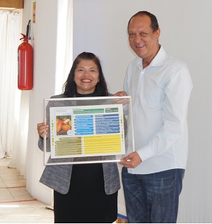 O secretário de turismo de Ilheus, Josenaldo Cerqueira, recebe o mapa da coordenadora regional do Sebrae, Claudiana Figueiredo. Foto Francisco Silva Secom Ilheus