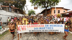 caminhada-indigena-1Na manhã do último domingo, 25, a 10ª Primavera dos Museus foi encerrada com a realização da 16ª Caminhada em Memória dos Mártires do Massacre do Rio Cururupe. Cerca de duas mil pessoas, entre índios tupinambás, convidados e apoiadores da causa indígena, percorreram o trajeto de Olivença até a foz do Rio Cururupe, à margem da Rodovia Ba-001, que liga Ilhéus a Olivença. O evento é promovido pelo Instituto Brasileiro de Museus (Ibram) e Ministério da Cultura, com apoio da Secretaria de Cultura (Secult) de Ilhéus.