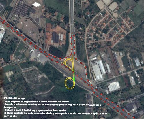 A Companhia de Desenvolvimento Urbano do Estado da Bahia (Conder), vinculada à Secretaria de Desenvolvimento Urbano (Sedur), e a ViaBahia, concessionária que administra a Rodovia Engenheiro Vasco Filho (BR-324), informam aos usuários que nos próximos sábado e domingo (8 e 9) haverá interdição parcial das pistas da BR-324, na altura do km-523, em decorrência da montagem das vigas pré-moldadas do Viaduto de Interseção da Avenida Nóide Cerqueira com a rodovia federal. A interdição parcial será das 5 às 17h.