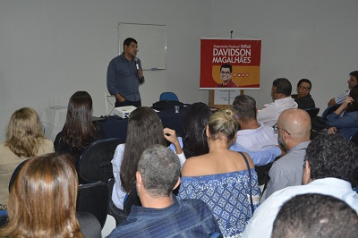 O deputado federal Davidson Magalhães (PCdoB) realizou, na noite desta segunda-feira (31), uma reunião aberta no Hotel Tarik Fontes, em Itabuna. O encontro teve como objetivo realizar um balanço do mandato, apresentando à população, as obras e serviços conquistados para Itabuna e outros municípios do sul da Bahia. Davidson também fez uma análise da conjuntura nacional, mostrando como isso afeta a região, além de apontar caminhos futuros para o mandato.