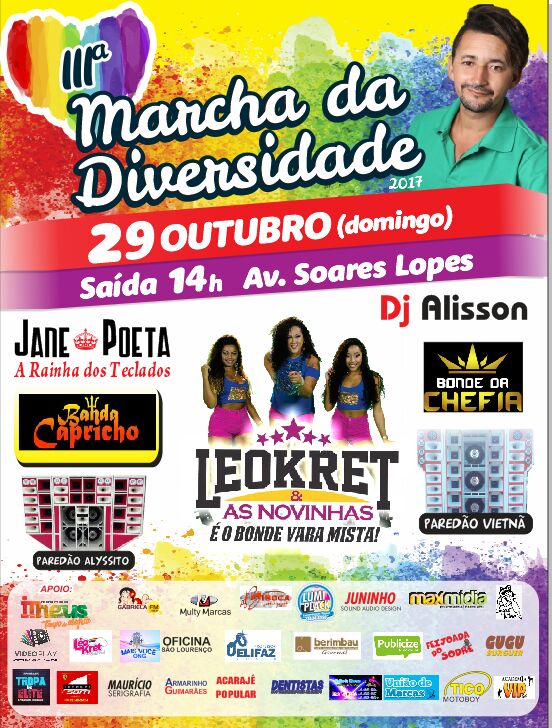 A Marcha da Diversidade também simboliza um momento de festa e de confraternização. No início, haverá um esquenta musical com hits de paredões. Em seguida, a participação de artistas das bandas Hit da Bregadeira, Bonde da Chefia, Banda Capricho, além da cantora Jane Poeta, a convidada especial Leo kret e As Novinhas, Djs, Gogo Boys e transformistas.