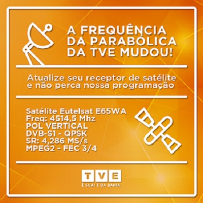A partir do próximo domingo (01), algumas cidades do interior do Estado da Bahia terão o sinal da TVE interrompido. A intervenção é em função da troca do satélite da emissora, e visa melhorar a qualidade da imagem que chega até a casa do telespectador e diminuir custos.
