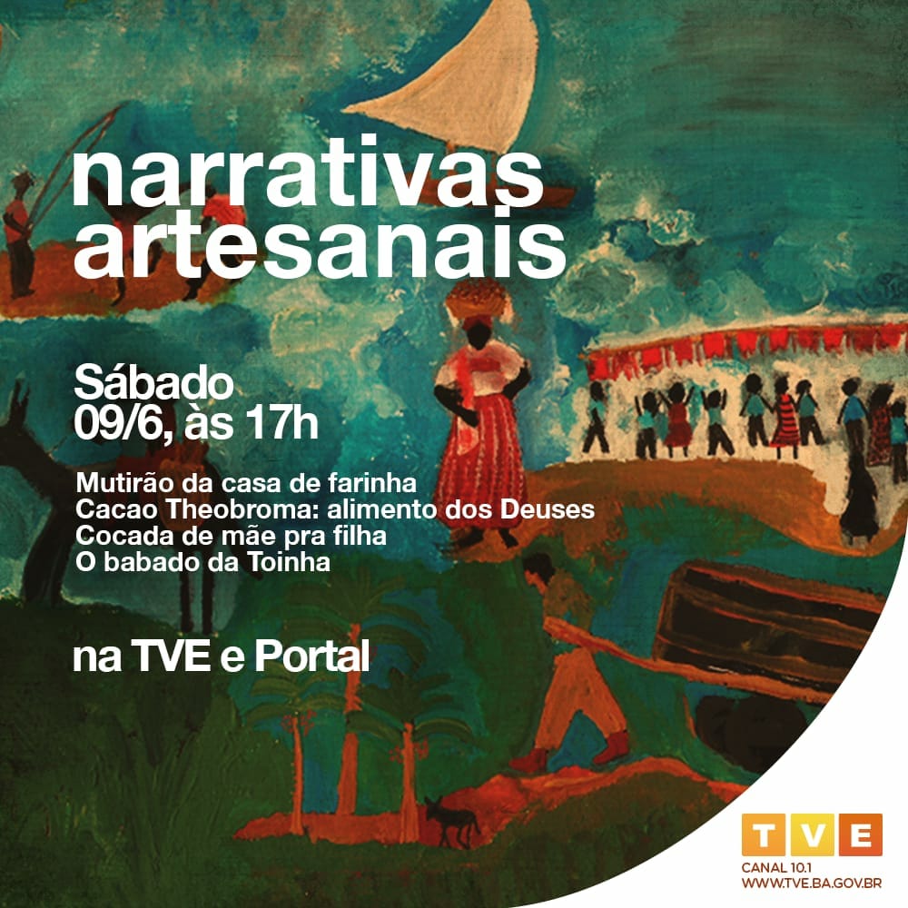 Narrativas ArtesanaisA TVE Bahia vai exibir aos sábados de junho a série ‘Narrativas Artesanais’, que contam pequenas histórias educativas de mestres e aprendizes, que mantêm atividades tradicionais de origem ancestral com valor cultural, histórico e ambiental para a região de Serra Grande e Itacaré, no entorno do Parque Estadual da Serra do Conduru, Litoral Sul da Bahia. O primeiro episódio do curta vai ao ar neste sábado (09), às 17h.