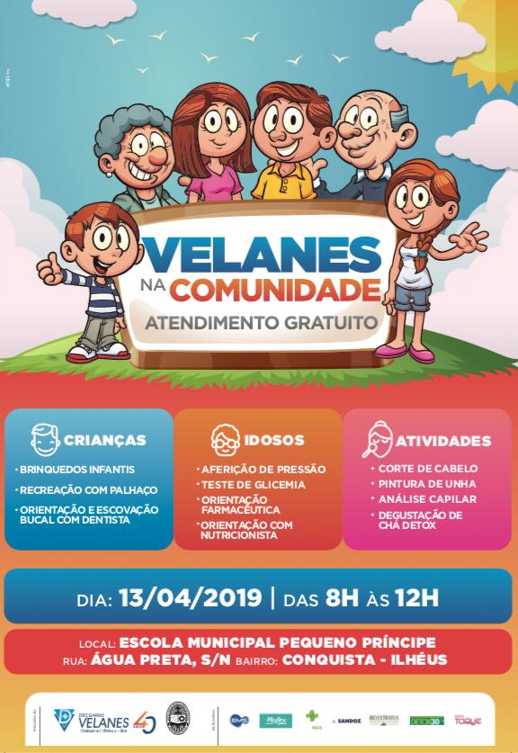 A partir das 8h desse sábado (13), em Ilhéus, a Escola Municipal Pequeno Príncipe, localizada na Rua Água Preta, bairro da Conquista, vai sediar o projeto “Velanes na Comunidade”. O objetivo da iniciativa é oferecer serviços gratuitos para crianças, adultos e idosos.