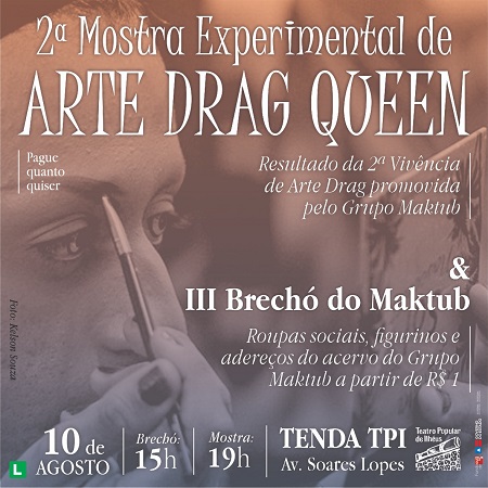 Vai ter Rouge, Rihanna, Mariene de Castro, Beyoncé, Linda Batista, As Frenéticas e muito mais na Mostra Experimental da II Vivência com a Arte Drag Queen do Grupo Teatro/Circo Maktub. O evento acontece às 19 horas deste sábado (10), na Tenda Teatro Popular de Ilhéus (TPI). “O resultado é um caleidoscópio de identidades, brilhos e discursos. Para a mostra, esta turma promete diversão e reflexão”, declarou o diretor Fábio Nascimento. O ingresso será vendido na modalidade pague quanto quiser e a classificação indicativa é 14 anos.