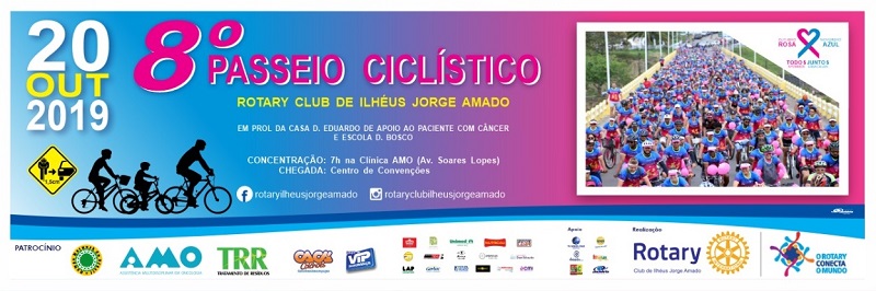 Como parte da programação do “Outubro Rosa”, o Rotary Club de Ilhéus Jorge Amado, com o apoio da Prefeitura, realiza seu 8º Passeio Ciclístico, neste domingo (20), em benefício da Casa Dom Eduardo de apoio ao paciente com câncer e Escola Dom Bosco.