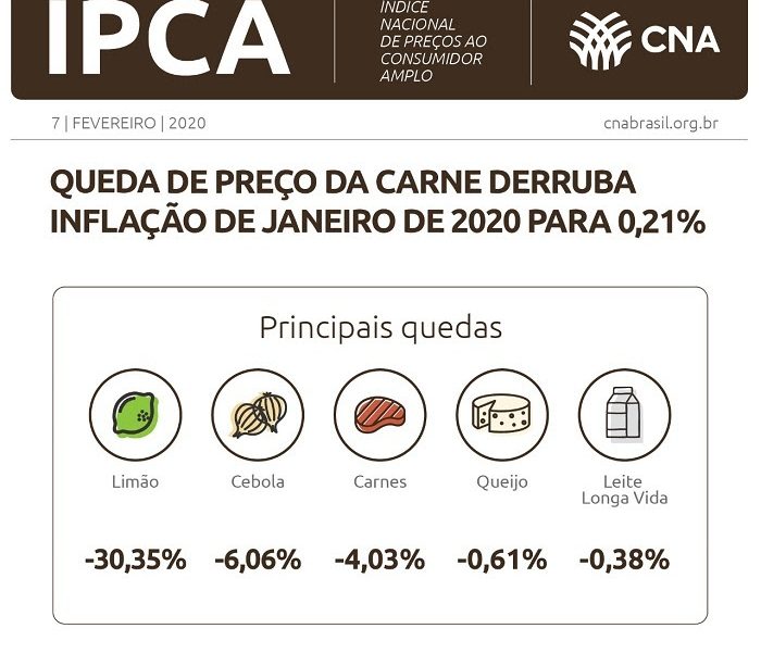 CNA: Queda do preço das carnes leva ao menor IPCA de janeiro desde 1999