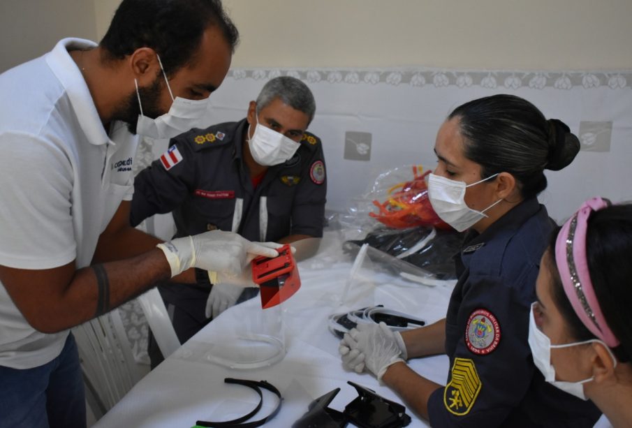 Nesta quarta-feira (8) militares do 5° Grupamento de Bombeiros Militar (5°GBM) de Ilhéus, participaram de uma instrução para confecção de máscaras de proteção facial. A Face Shield 3D, foi projetada pelo Centro de Pesquisa e Desenvolvimento Tecnológico em Informática e Eletroeletrônica (Cepedi) de Ilhéus, e atende às normas estabelecidas pela Agência Nacional de Vigilância Sanitária (Anvisa).