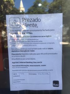 O banco colocou na porta da unidade um cartaz que não trazia informações claras sobre o ocorrido, deixando os clientes sem informações sobre o real motivo da suspensão do atendimento ao público. No caso de contaminação por Covid-19, a instituição bancária deveria suspender as atividades por completo, além de isolar os colegas que mantiveram convívio com a pessoa infectada.