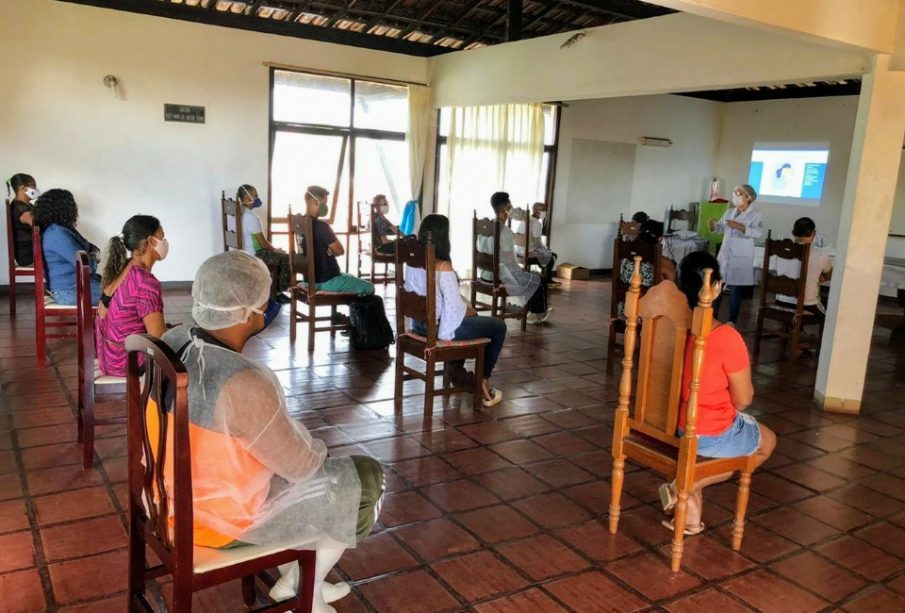 Os 45 colaboradores do Abrigo São Vicente de Paulo, em Ilhéus, receberam um treinamento da Universidade Estadual de Santa Cruz (Uesc) para o correto uso de Equipamentos de Proteção Individual (EPI’s). Realizada pela docente Carla Daiane Costa Dutra, do Departamento de Saúde da universidade, a capacitação integra o pacote de medidas que a direção do abrigo tem adotado para o fortalecimento da prestação de serviços de assistência aos idosos neste período de pandemia.