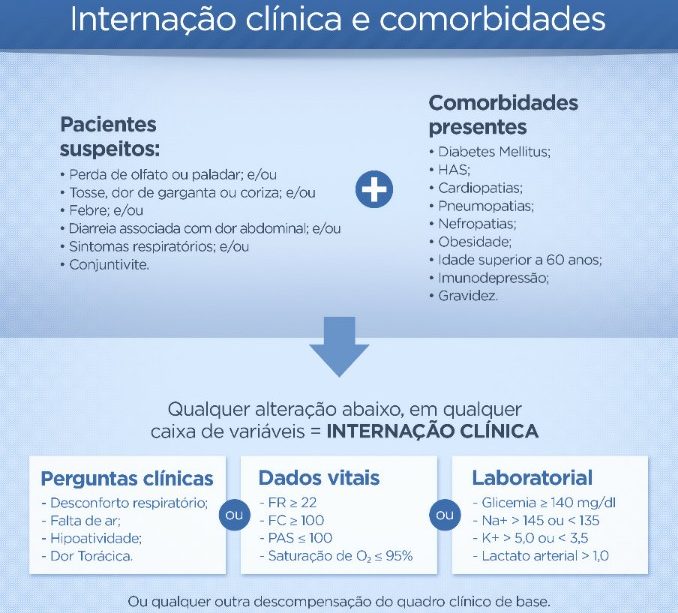 Havendo quaisquer alterações clínicas, laboratoriais ou descompensação clínica da doença de base (comorbidade), recomenda-se a internação hospitalar para uma monitorização e acompanhamento.