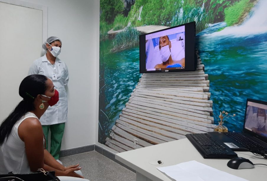 No último mês de junho, o Hospital Regional Costa do Cacau (HRCC), em Ilhéus, inaugurou a sua sala virtual para encontro, por vídeo chamada, entre pacientes internados e seus familiares. Devido às restrições de acesso à Unidade de Terapia Intensiva (UTI) Geral e a Ala Covid-19, por causa da pandemia do novo coronavírus, esse equipamento foi instalado e organizado para prevenir o risco de contágio na unidade hospitalar.