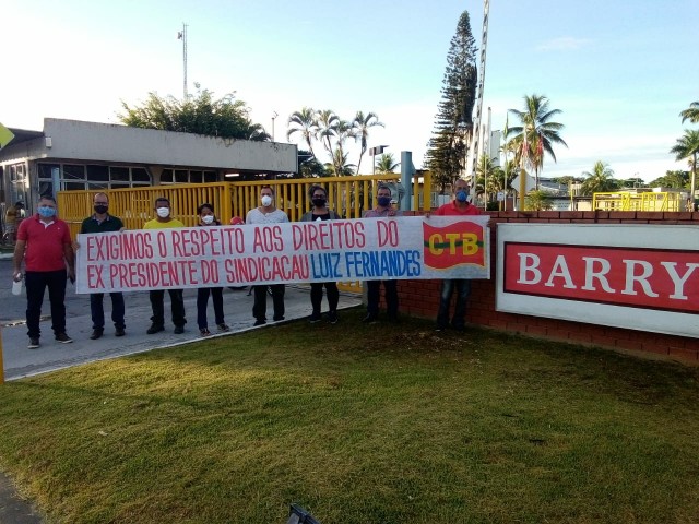 Na manhã desta sexta-feira (18), um grupo de sindicalistas, da Confederação de Trabalhadores e Trabalhadoras do Brasil (CTB), protestou contra o aviso de demissão emitido pela Barry Calebaut a Luiz Fernandes, ex-presidente do SindiCacau.