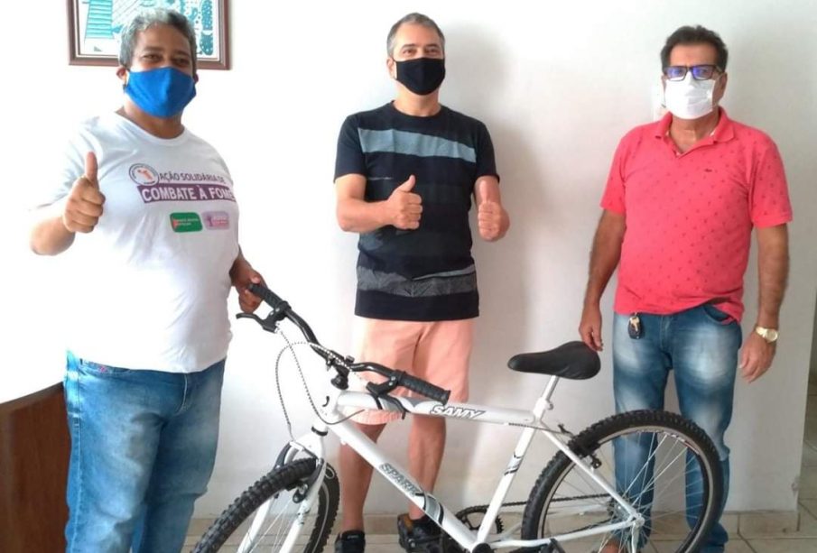 Na manhã desta segunda-feira (26), representantes do Comitê Popular Solidário, Rodrigo Cardoso e Ednei Mendonça, entregaram uma bicicleta sorteada na Live Solidária do último sábado (24).