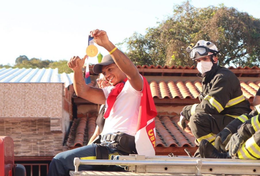 Depois de passar pelo Centro de Canoagem, o atleta se dirigiu à residência da família, onde o abraço na mãe, dona Dilma, foi marcado por choro, emoção e agradecimento. Com o filho Sebastian nos braços, Isaquias mais uma vez acariciou a medalha de ouro e brincou com o menino. “Hoje o papai vai deixa você dormir com a medalha”, disse.