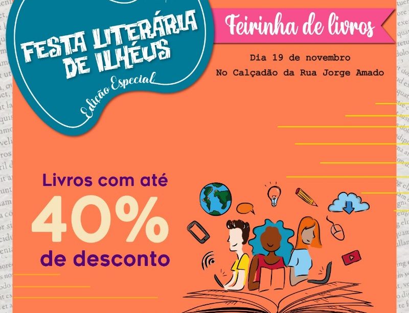 O fim de semana começa com programação cultural. Com todos os cuidados e protocolos de segurança, a Festa Literária de Ilhéus – Edição Especial, acontece dia 19 de novembro, das 9h às 20h, na Praça Pedro Matos (em frente ao Teatro Municipal de Ilhéus).