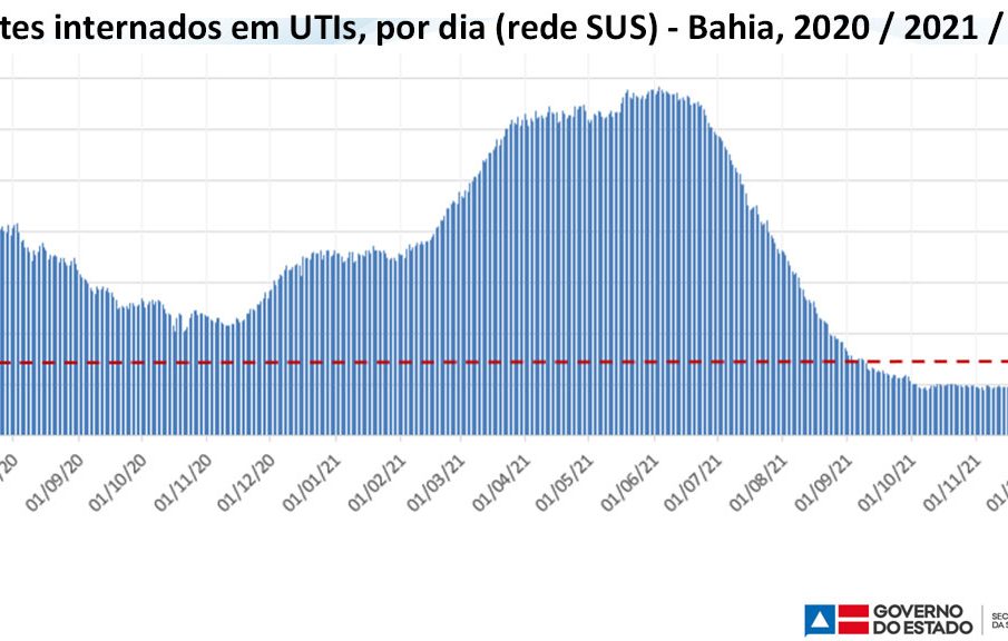 Sabia que mais de 80% dos internados nas UTIs não tomaram a vacina contra a Covid-19? O monitoramento diário da @saudegovba demonstra que a tendência de crescimento se acentuou após o Natal e o Réveillon tanto na rede SUS, em toda a Bahia, quanto na rede privada de Salvador.