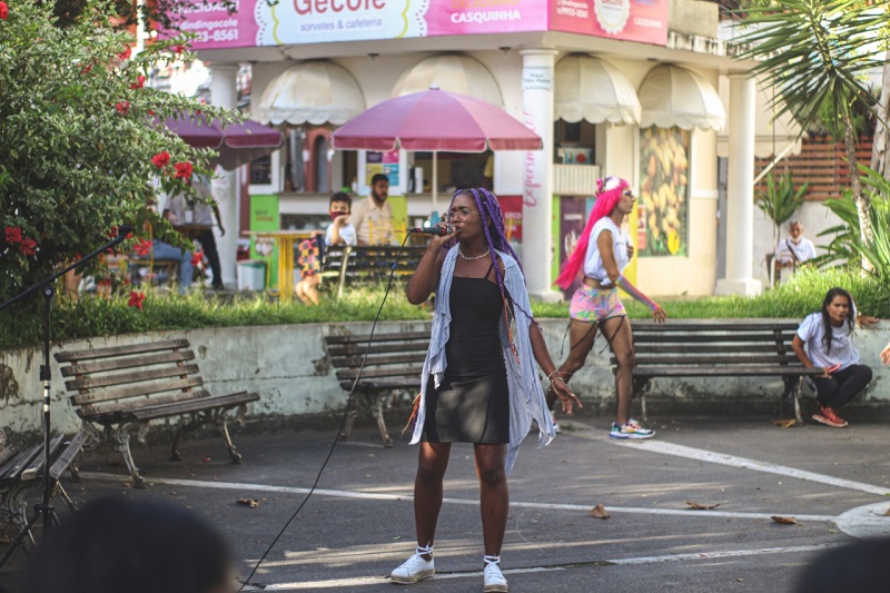 Circulando pelas ruas da cidade o elenco apresenta trechos do espetáculo de teatro O Quadro II: A revolução começa pelas margens, a narrativa foi construída colaborativamente por todas as pessoas envolvidas através da noção de Dramaturgia Expandida e a direção está com Valdiná Guerra. No elenco estão: Natália Santos, Ariana , Jeff Sotério, Mariane, Sindel Blade, Kelvin, Maria, Layssa Vitória e Dianne.