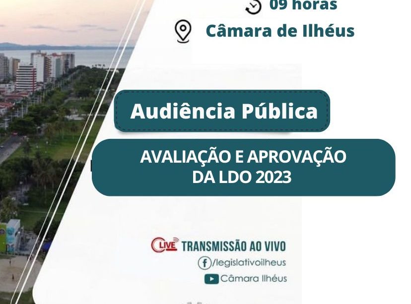 Cumprindo a legislação, a Câmara de Vereadores de Ilhéus realiza a segunda Audiência Pública para debater a Lei de diretrizes orçamentárias- LDO – em Ilhéus, nesta terça-feira, 26, a partir das 9h, no Plenário Gilberto Fialho.