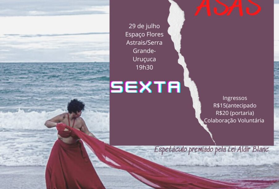 ASAS será exibido no dia 29 de julho, sexta-feira, no Espaço Flores Astrais, às 19h30, em Serra Grande – Uruçuca / BA. Junto com Natália Santos, que assume a percussão e o canto na ação cênica, a corpa-templo da atriz circula movida pela Dona dos Ventos. Aos sons do atabaque, Natália Santos conduz a dramaturgia sonora, uma pesquisa dança-vivenciada entre os complementares força e leveza. Uma investigação das qualidades de movimento de um corpo em ação presente.