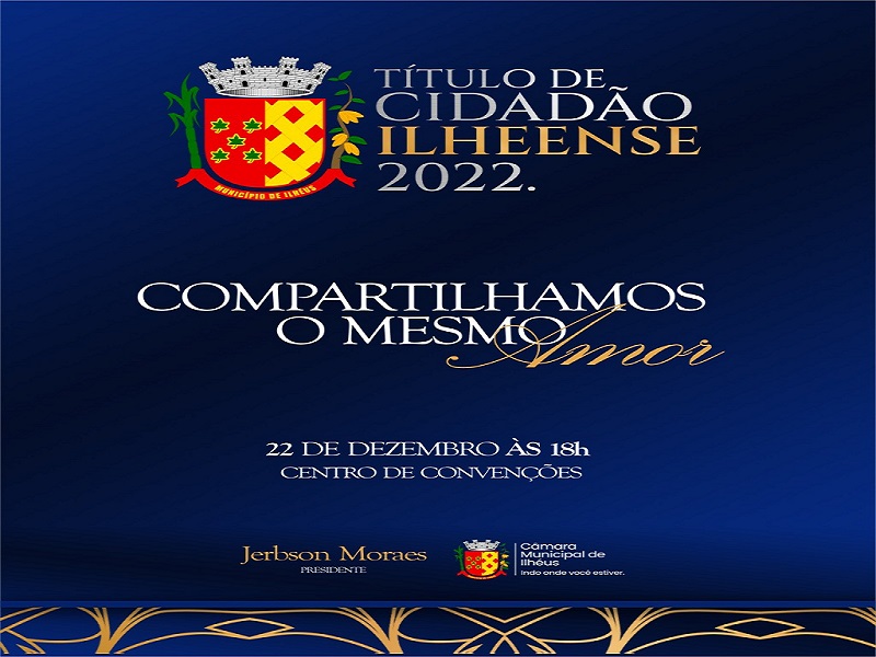 Nesta quinta-feira (22), a Câmara Municipal de Ilhéus realiza a Sessão Solene de entrega de títulos de “Cidadão Ilheense”. Noventa e uma personalidades irão receber o título, no encontro que acontecerá às 18h, no Centro de Convenções, e será transmitido em tempo real pelas redes sociais da Câmara, via Facebook e YouTube.