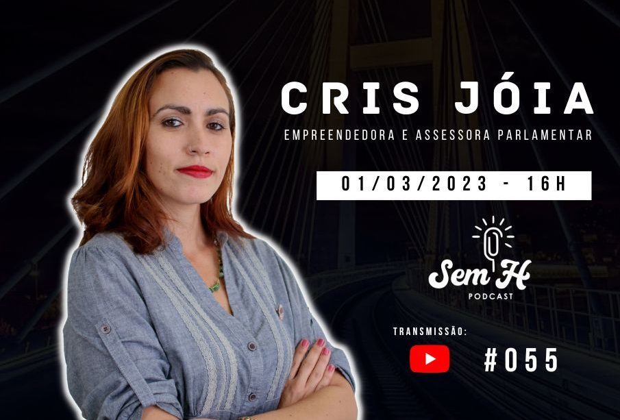 Nesta quarta-feira, 01 de março de 2023, às 16h, teremos um bate-papo Sem H com Cris Joia, acadêmica em gestão pública, empreendedora e assessora parlamentar. Conversaremos sobre a participação feminina nos espaços sociais e de poder.