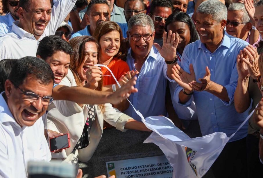 O ato contou com as presenças do governador Jerônimo Rodrigues, do prefeito Mário Alexandre, do vice-prefeito Bebeto, da secretária estadual da Educação, Adélia Pinheiro, da deputada estadual Soane Galvão, da ministra do Esporte, Ana Moser, lideranças políticas, imprensa e comunidade local, que foram recepcionados ao som do grupo Batuca GG e da fanfarra Guerreiros da Bahia.