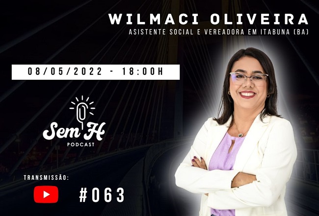 O Sem H Podcast recebe nesta segunda-feira, dia 08 de maio de 2023, às 18h, a assistente social Wilmaci Oliveira, que exerce seu primeiro mandato de vereadora, pelo PCdoB, na Câmara de Vereadores de Itabuna.