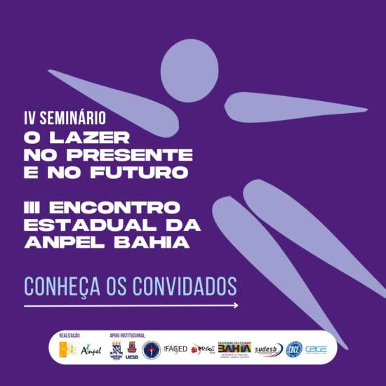 Nos dias 13, 14 e 15 de junho de 2023 acontecerá, na Universidade Estadual do Sudoeste da Bahia (UESB) – Jequié/Ba, o IV Seminário “O Lazer no Presente e no Futuro” e o III Encontro Estadual da ANPEL-Bahia.