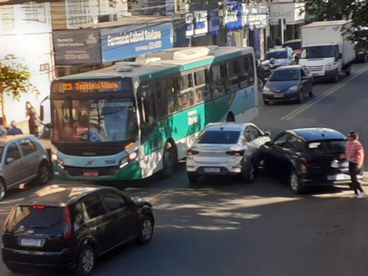 O trânsito na Rua Bento Berilo, Centro de Ilhéus, está lento no meio da tarde desta terça-feira (18), por conta de uma colisão entre dois veículos. Foto recebida por nossa redação às 15h06min de hoje.