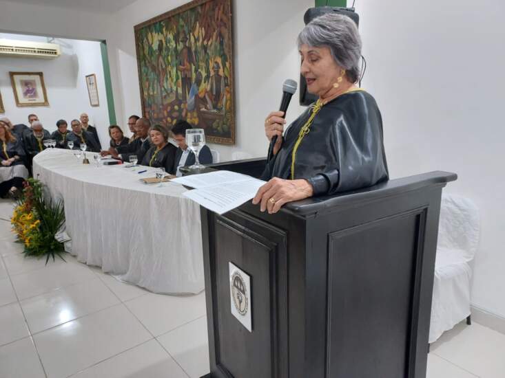 Na oportunidade, a nova acadêmica falou sobre sua trajetória acadêmica na Universidade e agradeceu a todos pelo convite, especialmente ao escritor Aleilton Fonsêca, que apresentou seu currículo à ALI. “No Departamento de Letras da UESC, criei o grupo de pesquisa Identidade Cultural e Expressões Regionais – ICER, direcionando a pesquisa para a literatura e o turismo. O entendimento é de que as narrativas de um povo são legado; evidenciam cultura, história, paisagens, costumes… E a expectativa é de que o turismo deve funcionar como estratégia de sustentabilidade e resistência identitária, pelos que recebem; enquanto enriquecimento cultural, para os visitantes”, destacou.