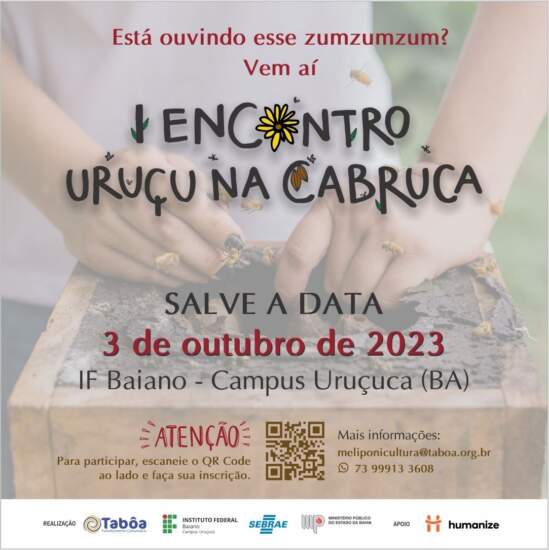O I Encontro Uruçu na Cabruca visa promover o debate sobre a prática da meliponicultura e seus impactos socioambientais na construção de territórios mais sustentáveis, em especial no contexto da região Sul da Bahia. Promover o diálogo de saberes e experiências entre meliponicultores/as, agricultores/as e estudiosos do tema é um dos princípios do evento. Para participar, agricultores(as) familiares, estudantes, pesquisadores e interessados(as) na temática podem se inscrever gratuitamente entre os dias 13 e 29 de setembro, por meio de formulário neste link: https://abre.ai/urucunacabruca. As vagas são limitadas.