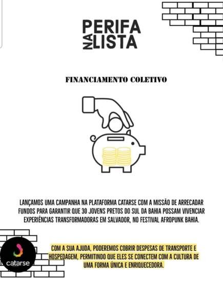 Projeto Perifa Na Lista lança campanha de arrecadação de fundos para participar do festival AfroPunk Bahia