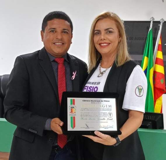 Na ocasião, o edil entregou uma placa, com registro de homenagem a esses profissionais de saúde, para a fisioterapeuta Karla Rocha Carvalho Gresik, coordenadora do curso de Fisioterapia da Faculdade de Ilhéus.