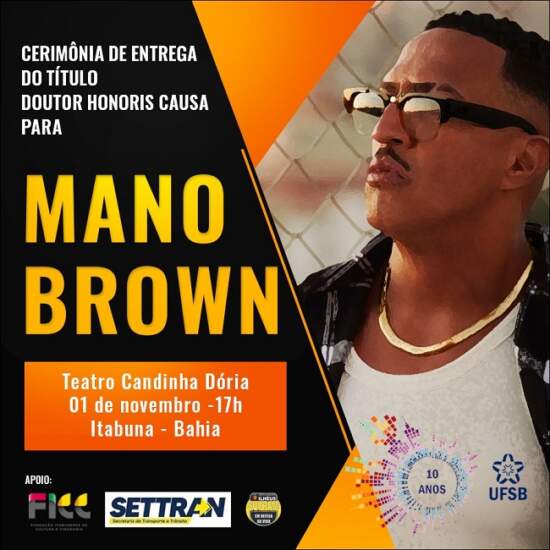 A Universidade Federal do Sul da Bahia (UFSB) finaliza os preparativos para a solenidade de entrega do Doutor Honoris Causa a Pedro Paulo Soares Pereira, o Mano Brown dos Racionais MC’s, compositor, rapper e figura influente no hip hop brasileiro. A cerimônia ocorrerá no Teatro Municipal Candinha Dórea, em Itabuna, no próximo dia 1º de novembro, quarta-feira, a partir das 17h. O evento é aberto ao público em geral.