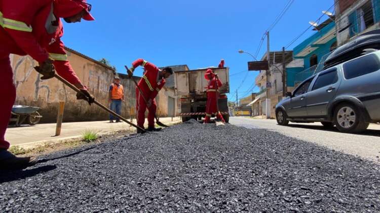 As equipes executam o serviço de remendo profundo com aplicação do Concreto Betuminoso Usinado a Quente (CBUQ), a fim de reparar os danos no asfalto causados pelo tráfego de veículos.