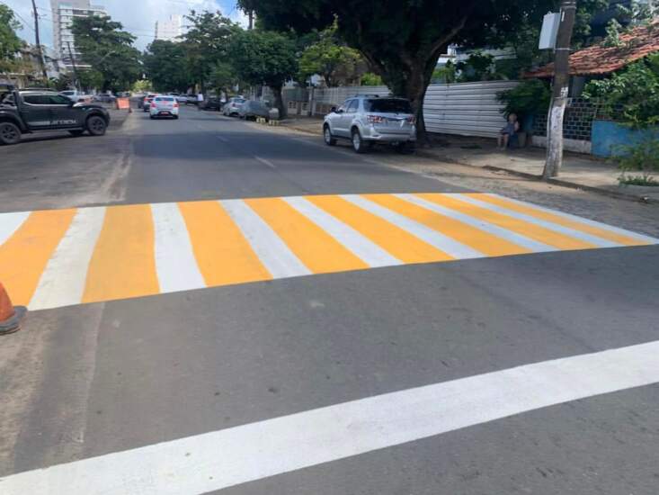 Ilhéus ganha novas faixas de pedestres elevadas, no centro, Cidade Nova e Orla Sul. A ideia é criar novas ferramentas de segurança para pedestres e motoristas, criando espaços de travessia das vias e obstáculos para redução da velocidade. E uma das que já estão implantadas, recebendo pintura e sinalização, é a localizada na Praça Misael Tavares, em frente ao Estádio Mário Pessoa, na Cidade Nova.