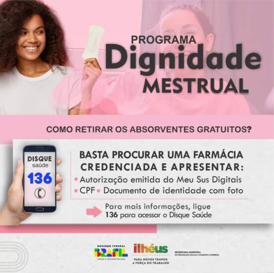 O Ministério da Saúde disponibiliza absorventes pela Farmácia Popular. O público alvo são pessoas entre 10 e 49 anos em vulnerabilidade social e que estejam cadastradas no CADÚNICO e podem retirar os absorventes nas farmácias credenciadas em todo o Brasil.