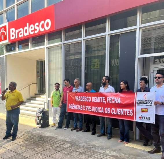 Sindicato dos Bancários de Ilhéus protesta contra o fechamento da agência 3519 do Bradesco