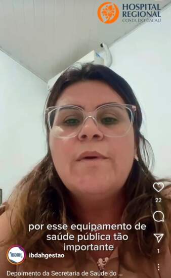 Nesta quinta-feira (06), o Hospital Regional Costa do Cacau (HRCC), em Ilhéus, unidade da Secretaria da Saúde do Estado da Bahia (Sesab), repercutiu um vídeo de uma publicação postada no Instagram, com o depoimento da secretária da Saúde de Una, Gleiciane Birschner.