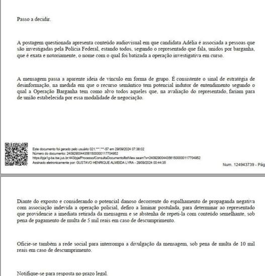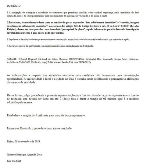 A professora e médica Adélia Pinheiro obteve mais duas vitórias na Justiça Eleitoral, ontem e hoje (30), contra o adversário Valderico Júnior (União Brasil). O filho do ex-prefeito de Ilhéus Valderico Reis (cassado em 2007) foi obrigado, por meio de liminar judicial, a retirar mais três conteúdos ofensivos e caluniosos contra a candidata da Coligação Mudança pra Vida Melhorar.