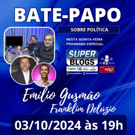 O Podcast Super Blogs está trazendo mais um episódio da edição especial de eleição 2024. É nesta quinta-feira (03), às 19h, ao vivo pelo canal do programa no YouTube.