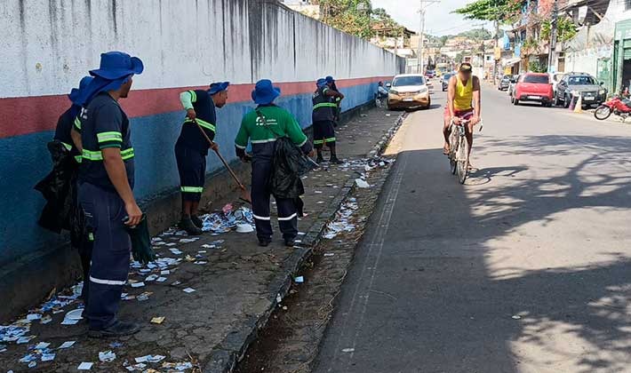 Desde a madrugada desta segunda-feira (07), a Prefeitura de Ilhéus, por meio da Secretaria Municipal de Serviços Urbanos (Secsurb), colocou em ação uma força-tarefa para garantir a limpeza das ruas após as eleições de 2024. As equipes, reforçadas com os profissionais que fazem a limpeza das praias, estão atuando em diversos pontos da cidade, removendo o material de campanha espalhado nas proximidades dos colégios eleitorais.