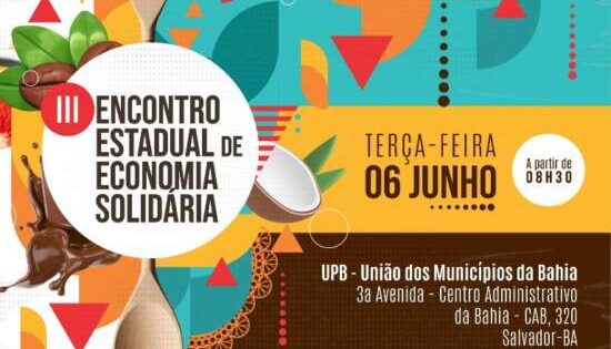 Representantes de três ministérios e autoridades locais se reúnem na próxima terça-feira (06/06) no III Encontro Estadual de Economia Solidária, na União dos Municípios da Bahia (UPB), a partir das 8h30. Em debate, as estratégias de Economia Solidária como forma de desenvolvimento do País e da Bahia e os principais ...Com sete novos grandes comandos, PM ampliará atuação na capital e no interior da Bahia