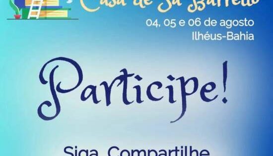 CONVITE *Venha para Feira do Livro da Casa de Sá Barretto:* *Dias 04, 05 e 06 de agosto, na Casa de Sá Barretto.* Dia 04.08.2023 – Abertura às 16h Dia 05.08.2023 – das 9 às 23:30h Dia 06.08.2023 – das 9 às 22h Av. Raymundo Sá Barretto, n°920, Jardim Savóia ...Cláudio Magalhães ressalta a importância da Casa de Farinha que será inaugurada em Olivença