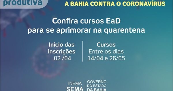Diante do cenário mundial de distanciamento social para impedir o avanço do novo coronavírus, a Secretaria Estadual do Meio Ambiente (Sema) abre, nesta quinta-feira (2), as inscrições para cinco novos cursos gratuitos na modalidade de ensino a distância – EaD, por meio do Programa de Formação em Meio Ambiente e ...IF Baiano de Uruçuca abre inscrições para curso técnico EAD em vendas